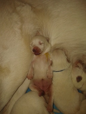 28.01.2015 22:26S velkou radostí oznamujeme ,že se nám 27.1. narodila štěňátka a je nás zase o pět bílých kuliček víc :) Debí zvládla všechno opět na jedničku a to i přesto ,že byly i krušné chvíle !